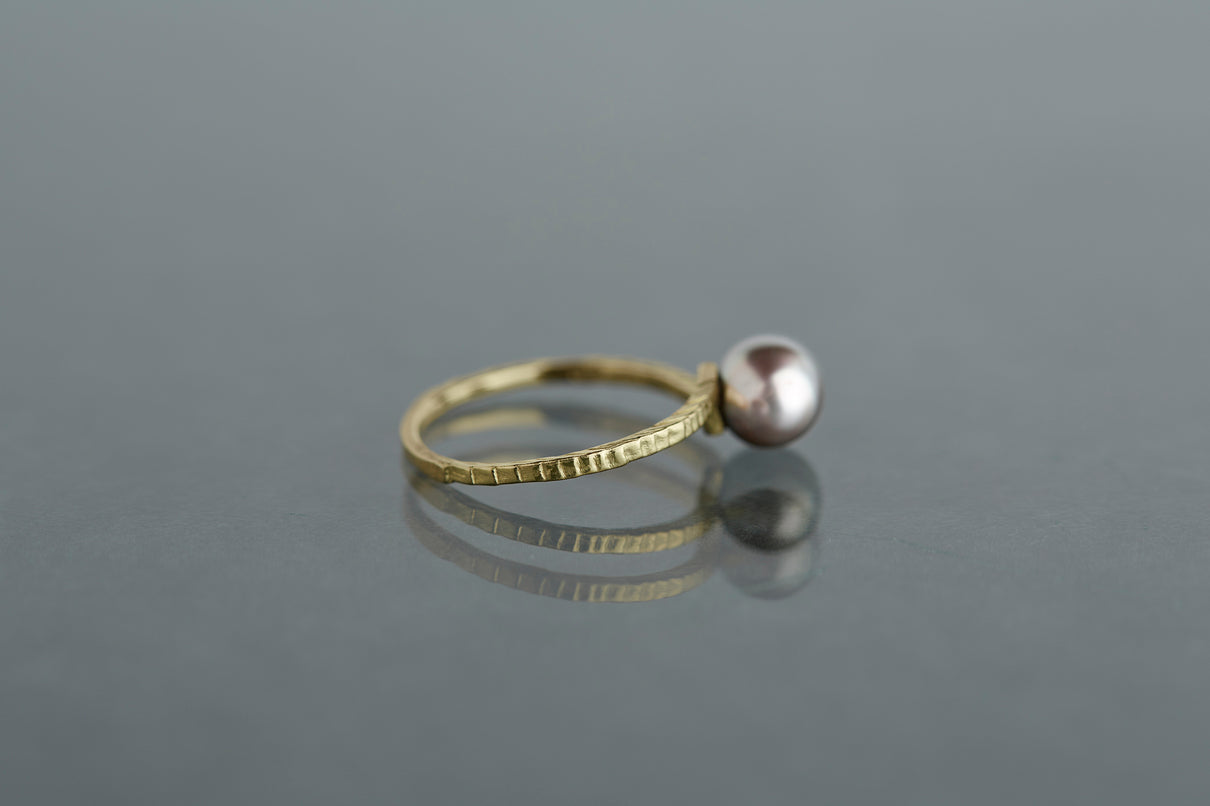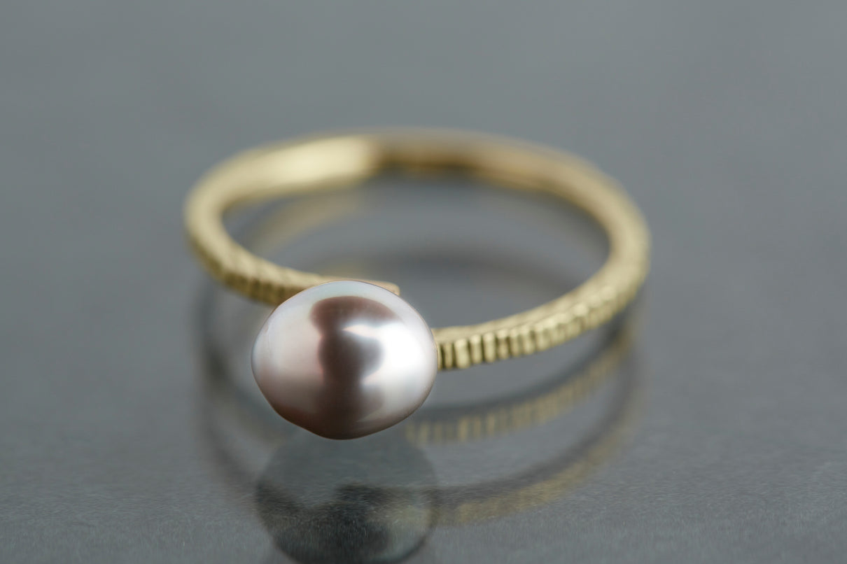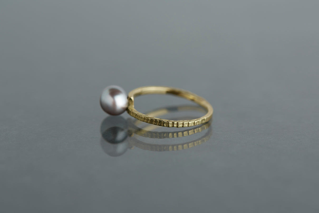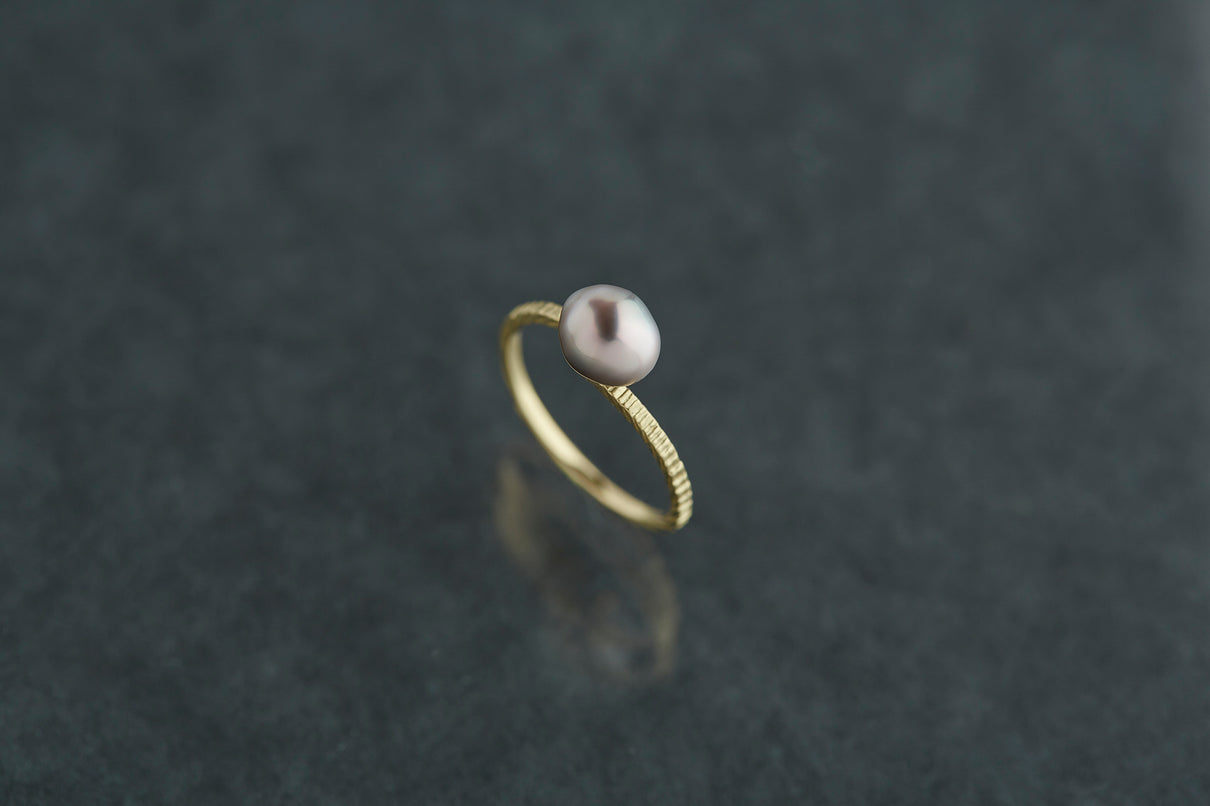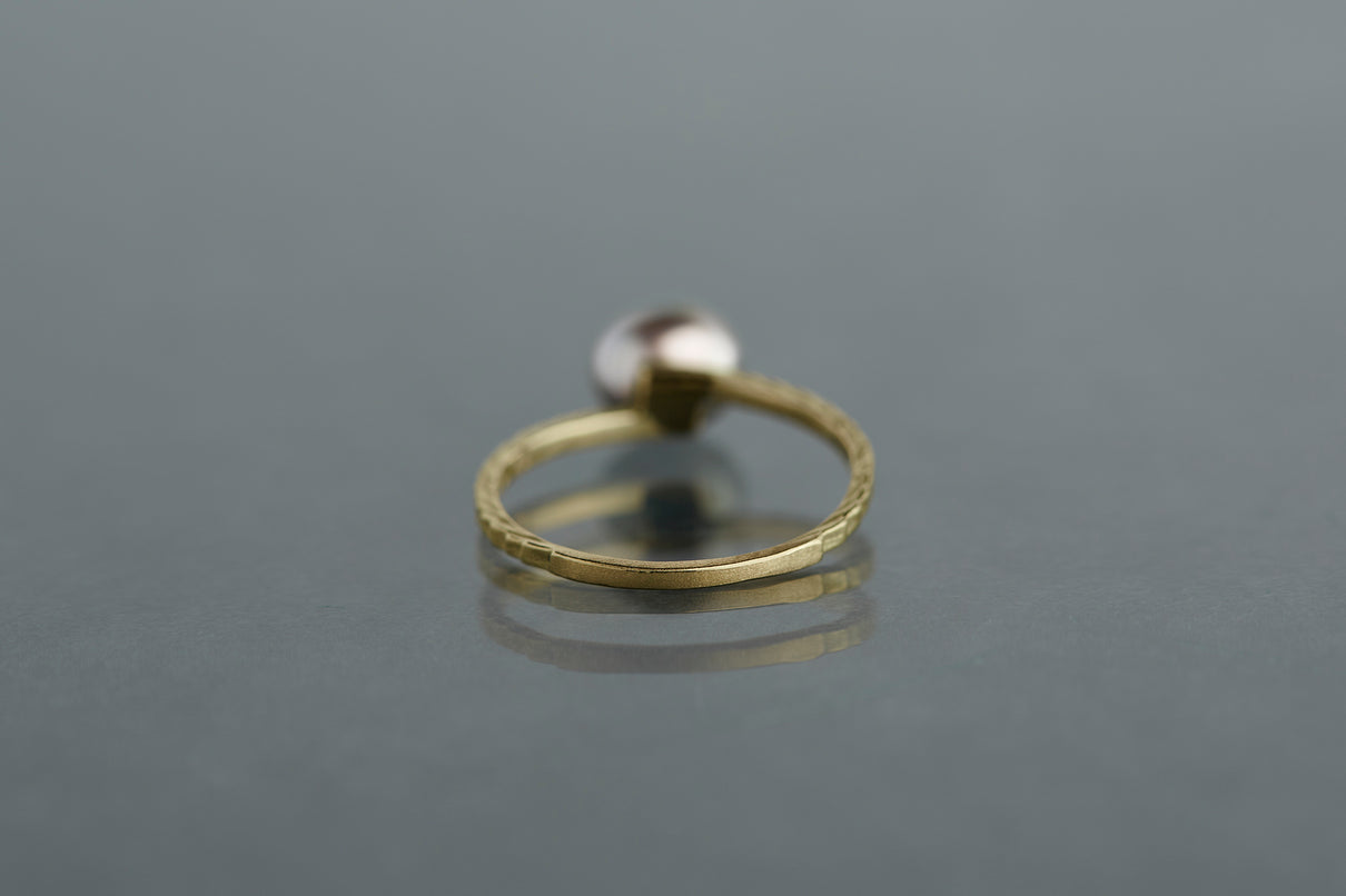 "立ち止まり、目を向ければ 大切なことは 変わらずいつもそこに在る ー" 2023 collection 「Unknown knowns」シリーズのリングベースに、豊かな自然が育んだたおやかなフォルムのタヒチパールを留めた一点もののリング。何色とも言い難い複雑で奥深い色彩が美しく艶めきます。僅かに左右のアームがずれたデザインで、シンプルながらもひと匙の個性を感じます。ひとつでも重ね付けにも活躍するパールリングです。