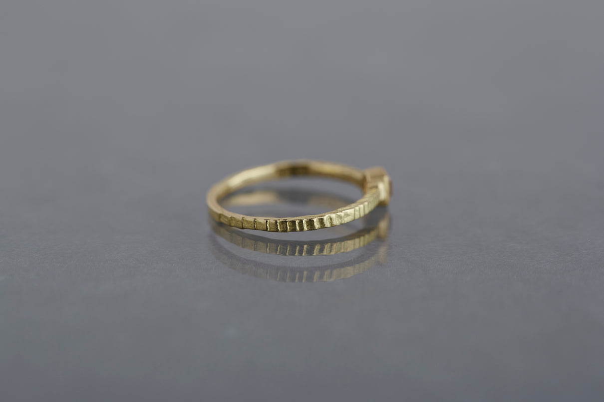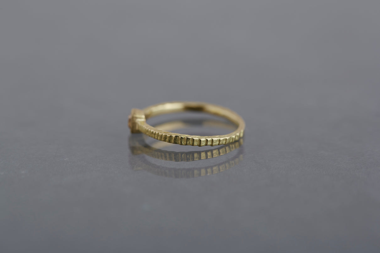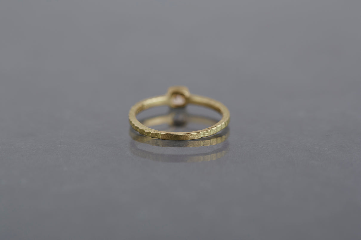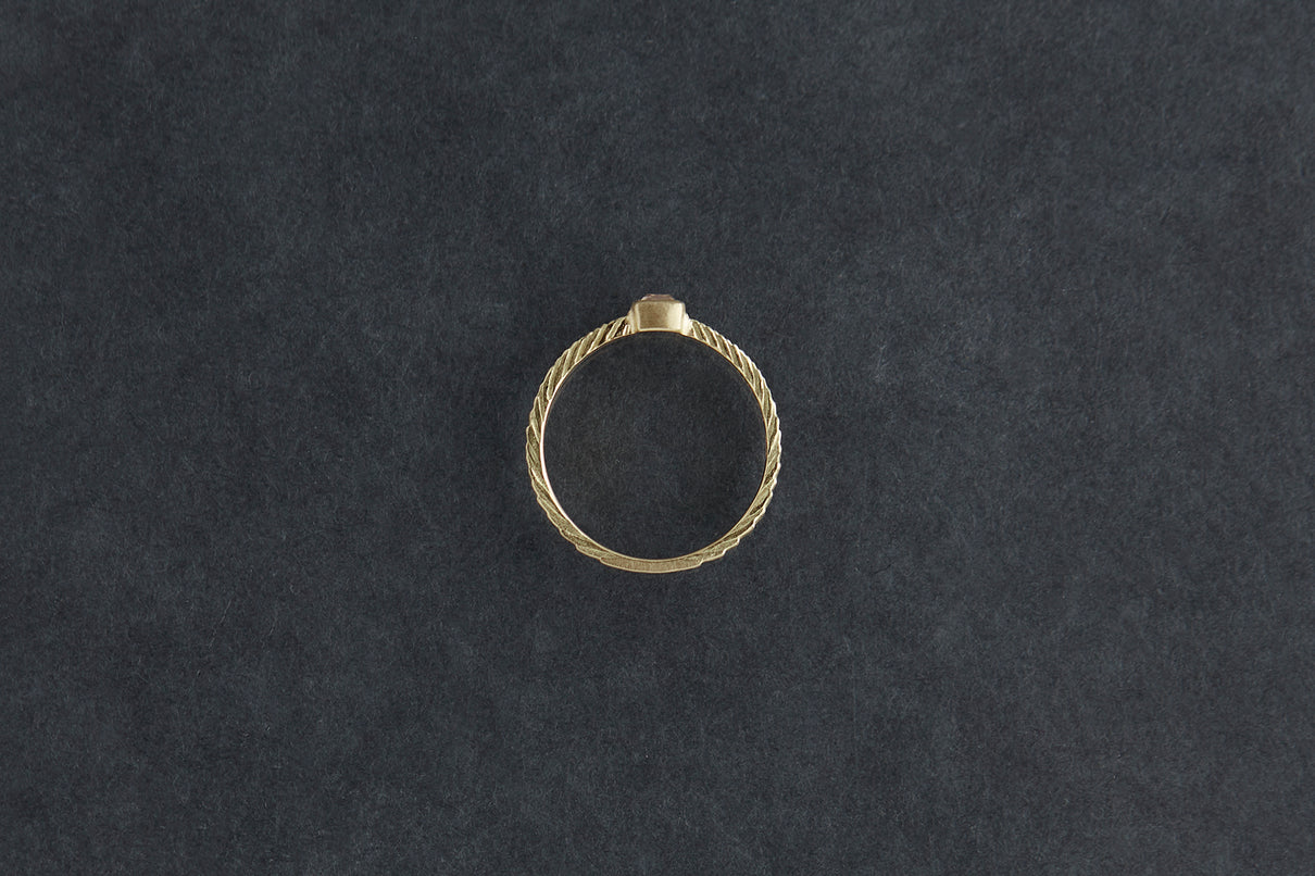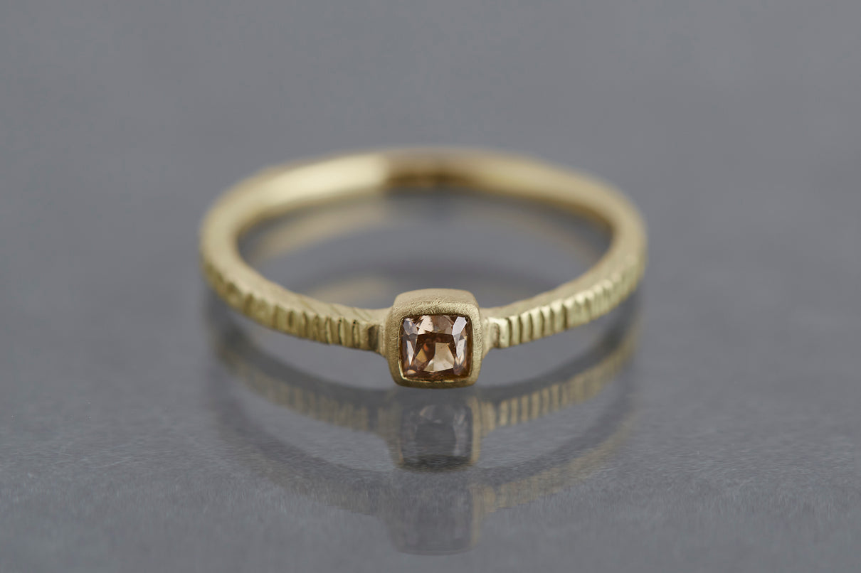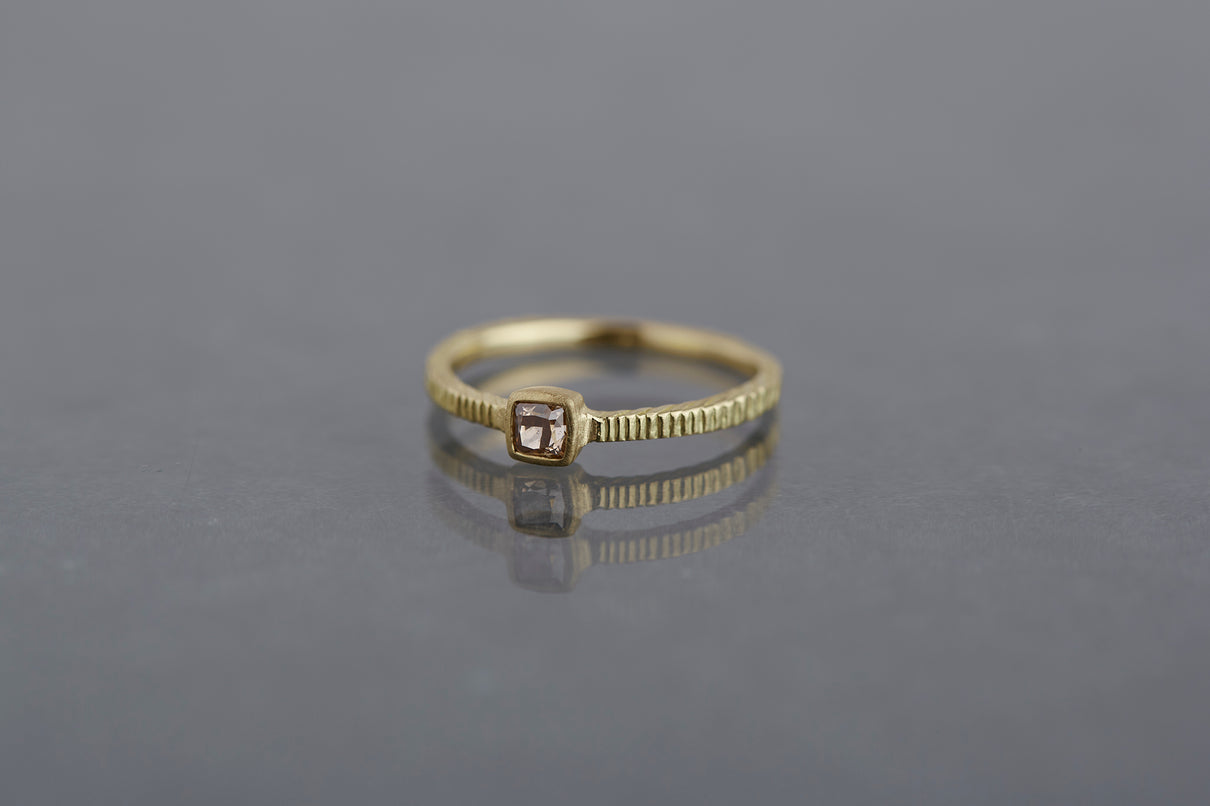 "立ち止まり、目を向ければ 大切なことは 変わらずいつもそこに在る ー" 2023 collection 「Unknown knowns」シリーズのリングベースに、美しいクッションカットのブラウンダイヤモンドを留めた一点もののリング。透明度が高いブラウンダイヤモンドは落ち着きのある印象ながら、奥行きのあるカッティングで美しい輝きを放ちます。細身のアームは軽やかな付け心地で、普段使いのリングとしてもおすすめです。