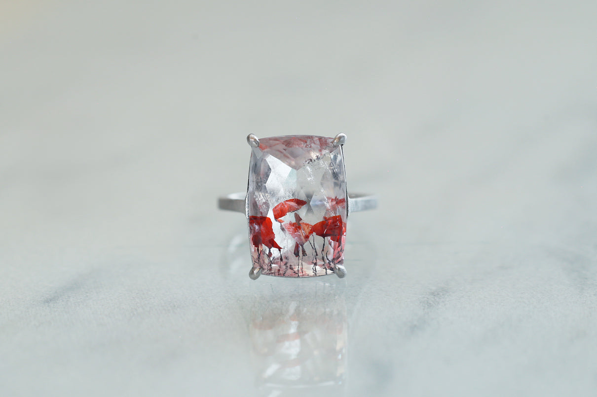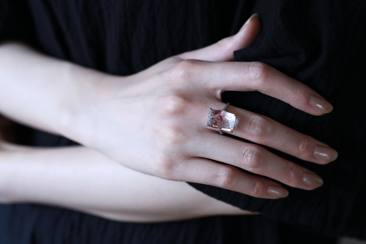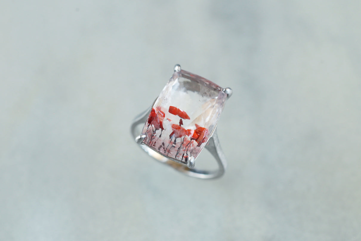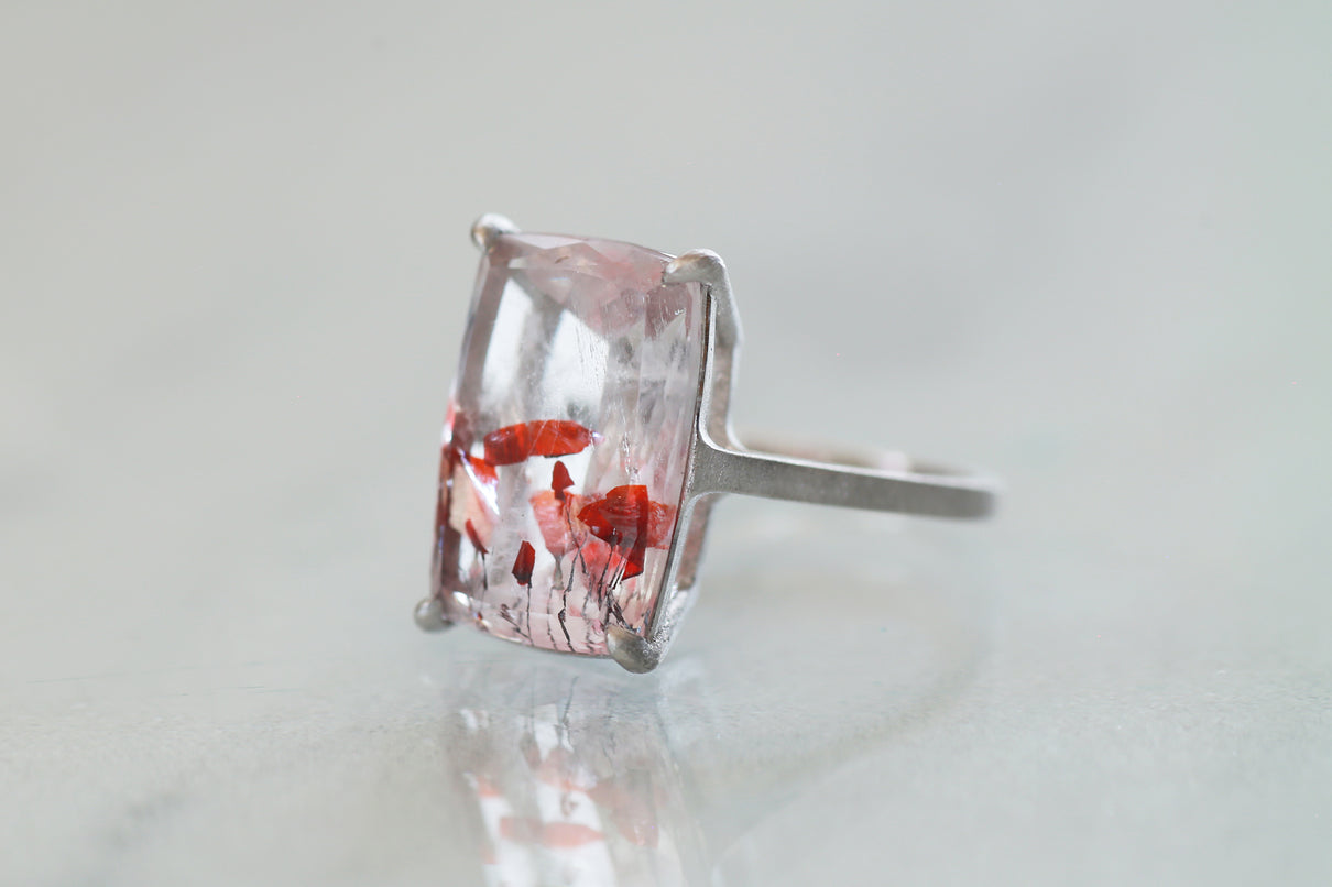 鮮やかに赤く煌めくヘマタイトインクォーツで仕立てた1点ものの
