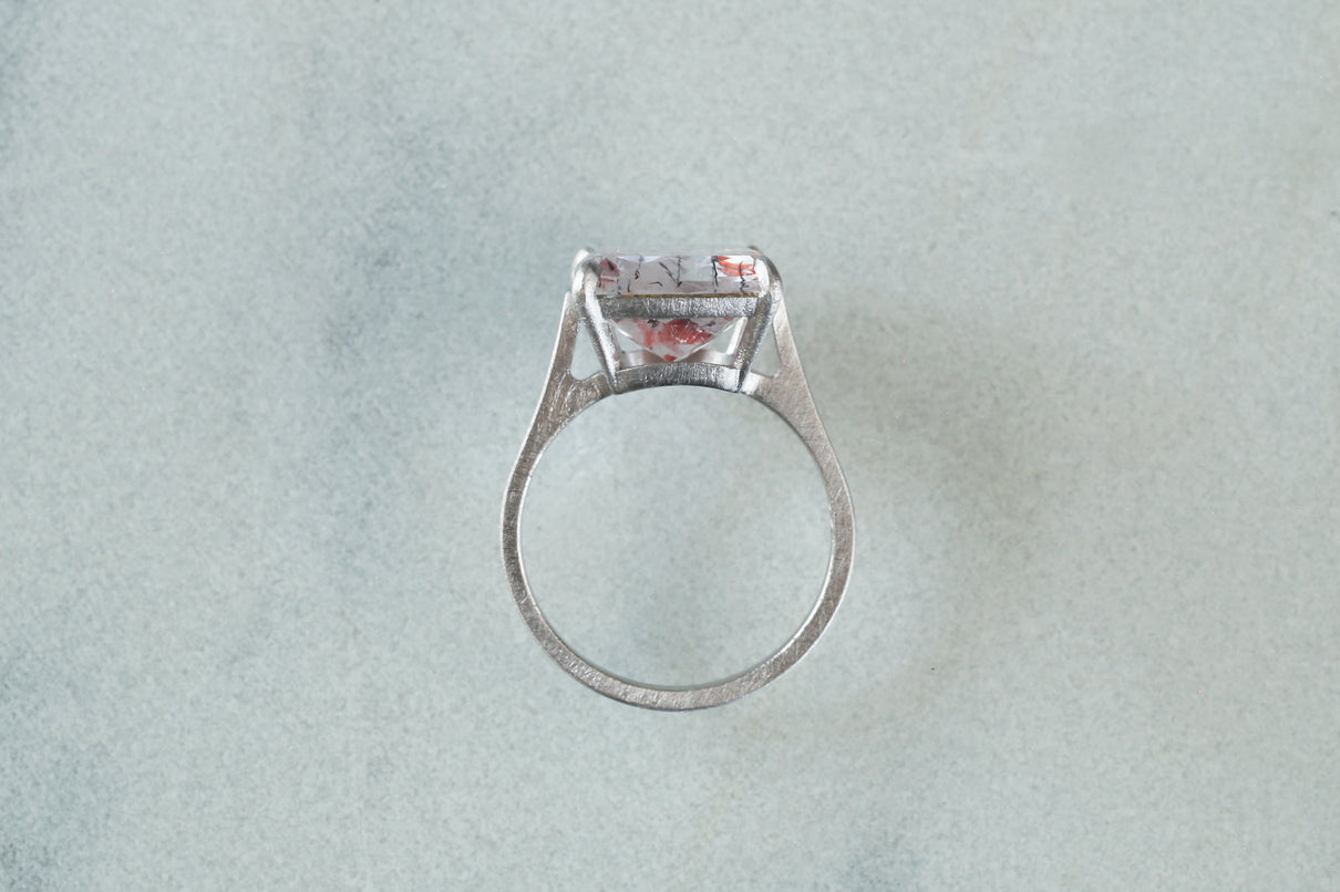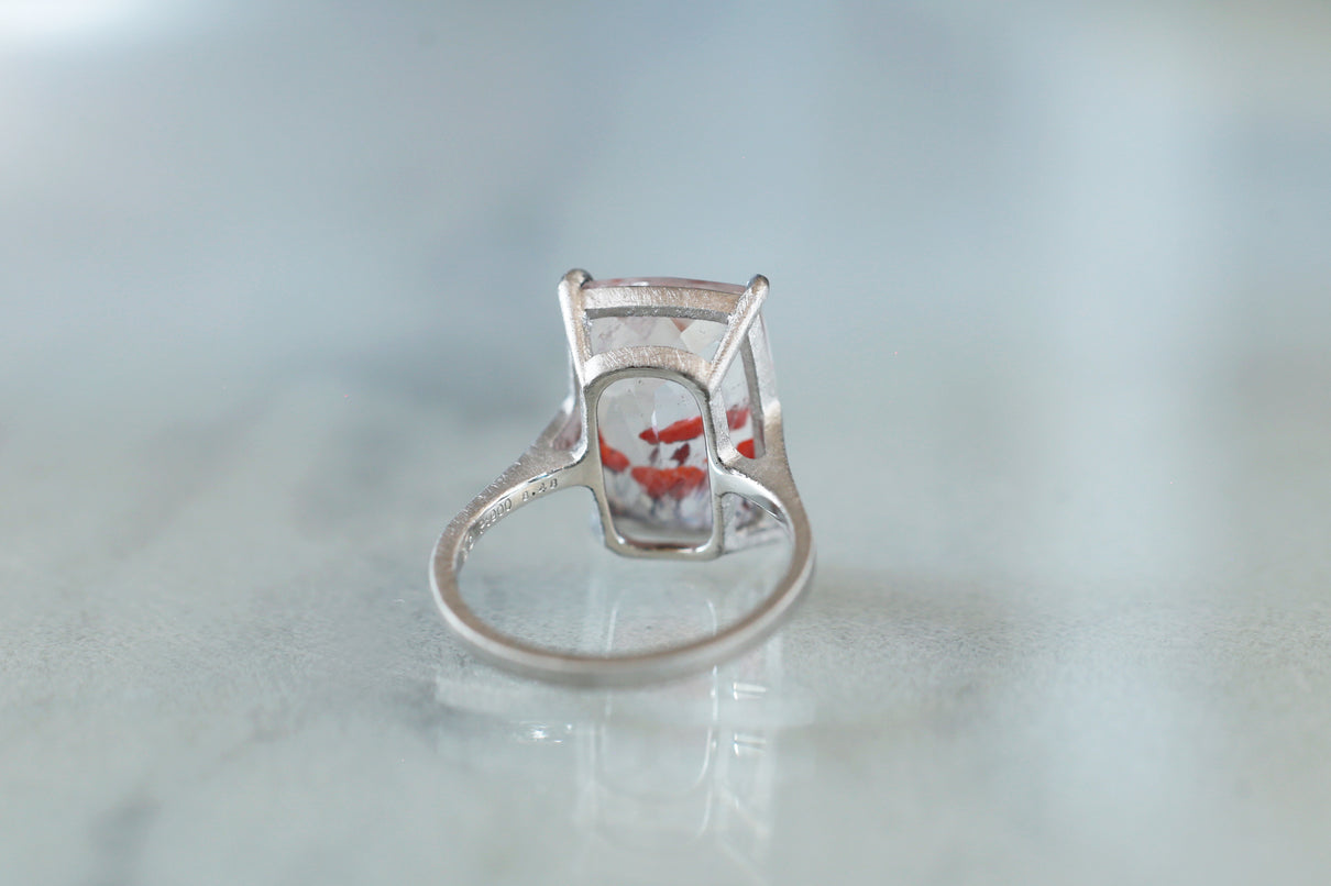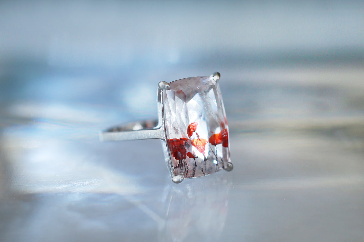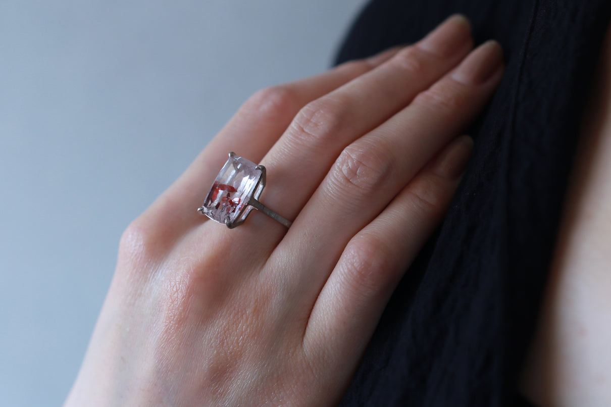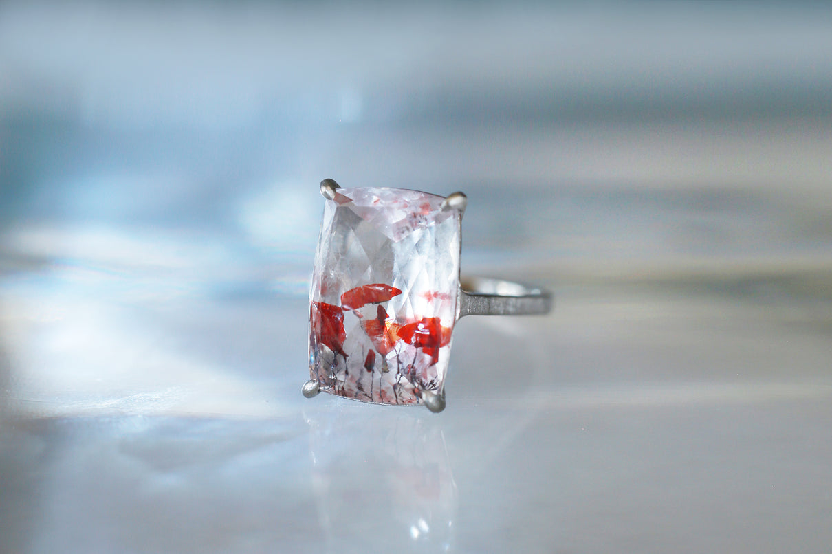 鮮やかに赤く煌めくヘマタイトインクォーツで仕立てた1点ものの