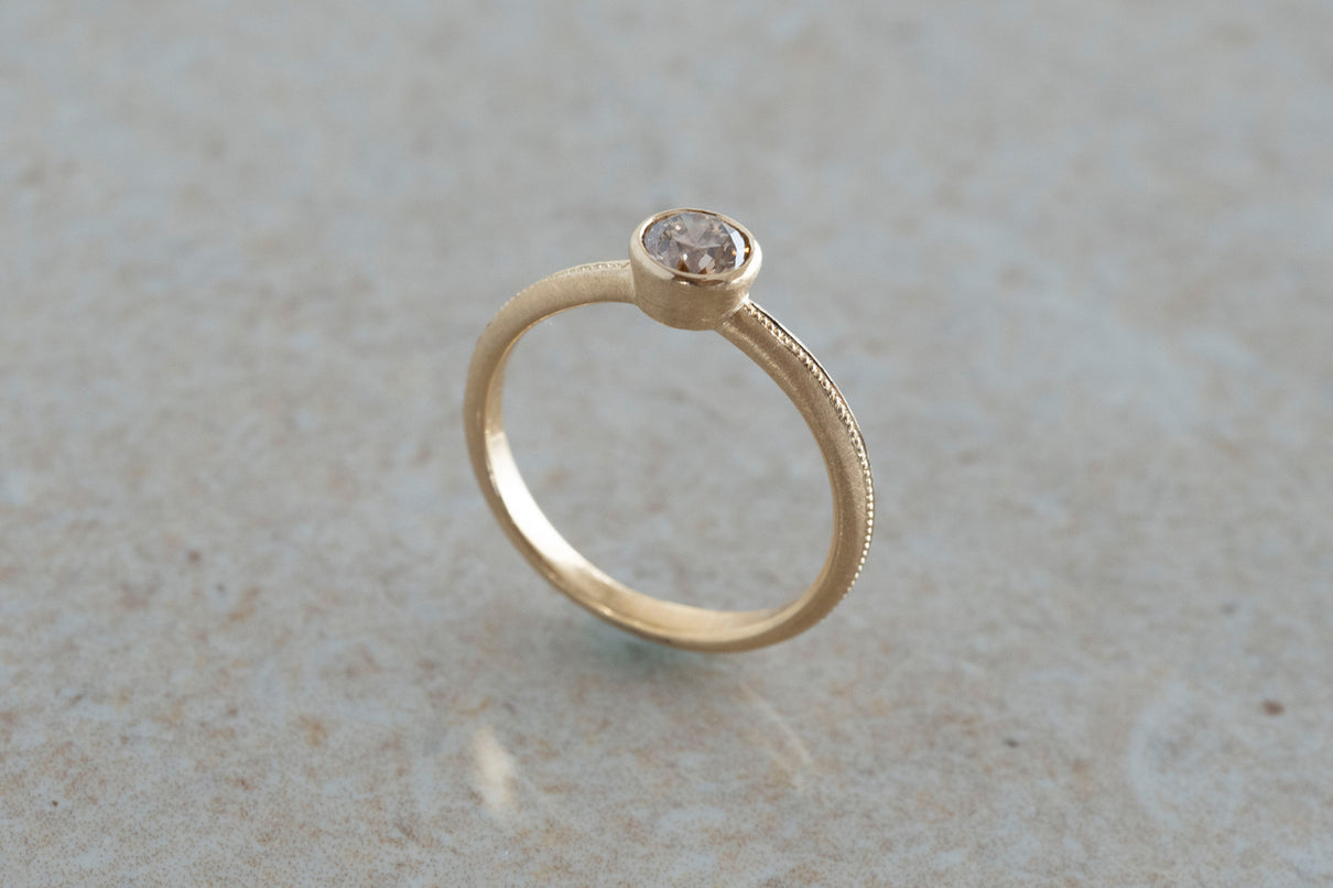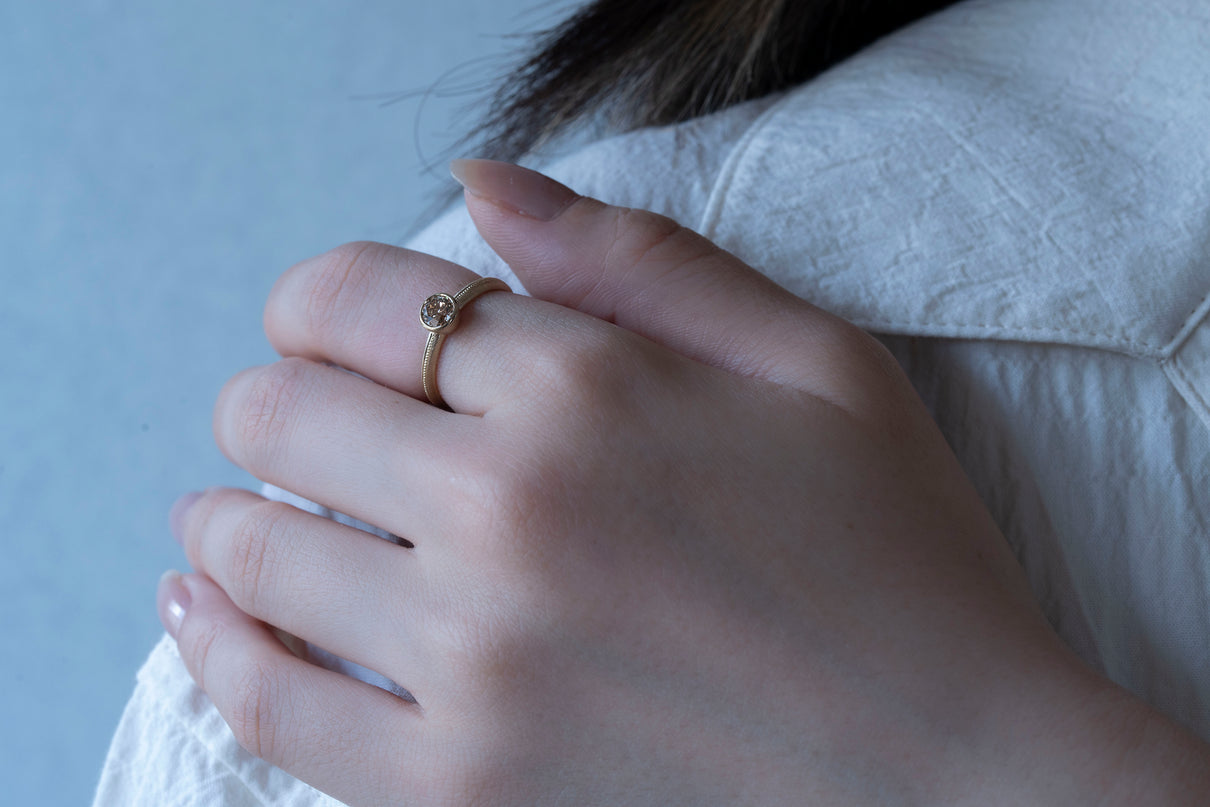 Milgrain ring + diamond ( brown )