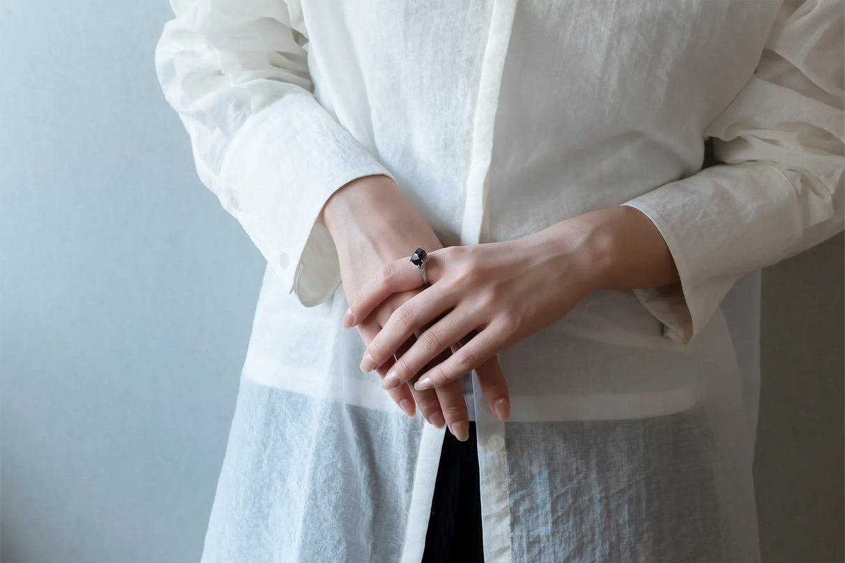 現代では希少な手磨り技法を行う宝石研磨士・大城かん奈 氏との 初のコラボレーション。Ryuiが厳選した原石を託し、独自のハンドカッティングにより生み出された宝石で仕立てたジュエリーは、まさに唯一無二。個性豊かな原石と真摯に対峙することで得たインスピレーションをもとに、大城氏ならではの美しい感性と確かな技術により研磨されたルースは、自由でおおらかな魅力を持つものばかり。手研磨ならではの不規則で美しいカット面を持つルースを、おおらかなデザインで包み生まれた、手仕事の技が融合した特別なジュエリーです。