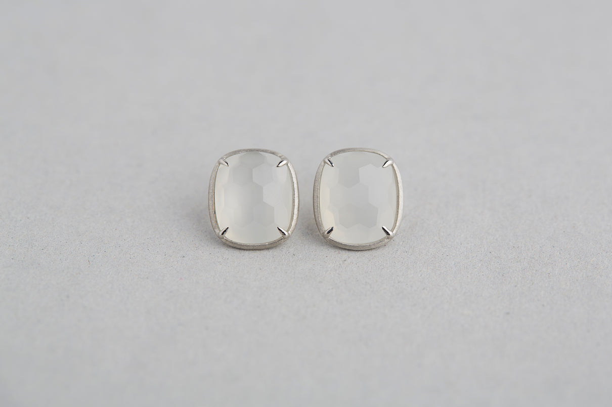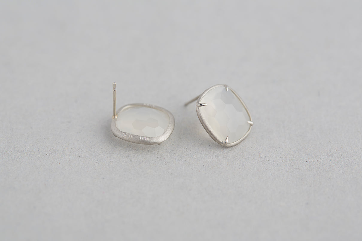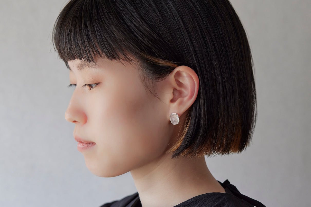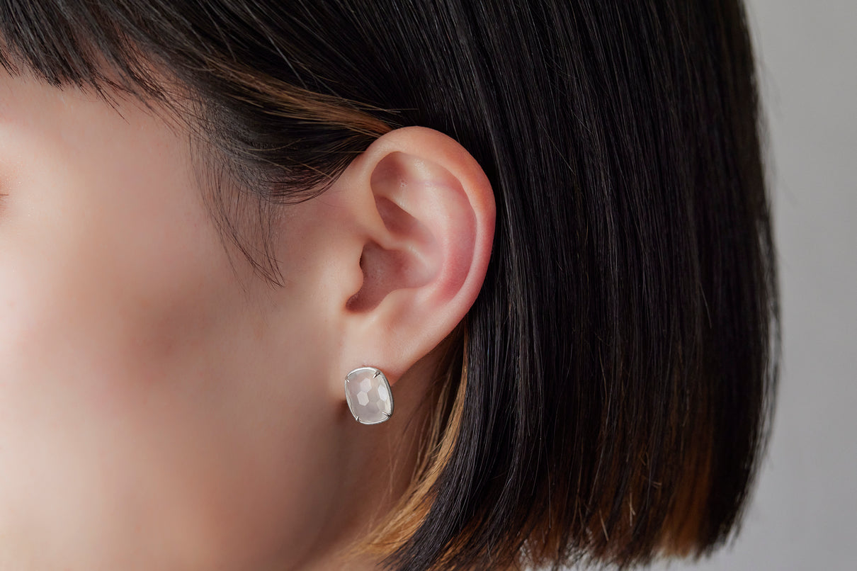 月光のような柔らかな光を纏うムーンストーンを、ミニマムなプラチナのマットフレームで仕立てたスタッドピアス。クラシックなカッティングが施されたルースは表裏に緩やかな丸みを帯びていて、そのふっくらとしたフォルムが寄り添うように耳を優しく飾ります。"幸運" という石言葉を持つムーンストーンは、日々のお守りとして身につけるのもお勧め。6月の誕生石としても親しまれているムーンストーンは、6月生まれの方の特別なお守りとして贈りものにも最適なアイテムです。