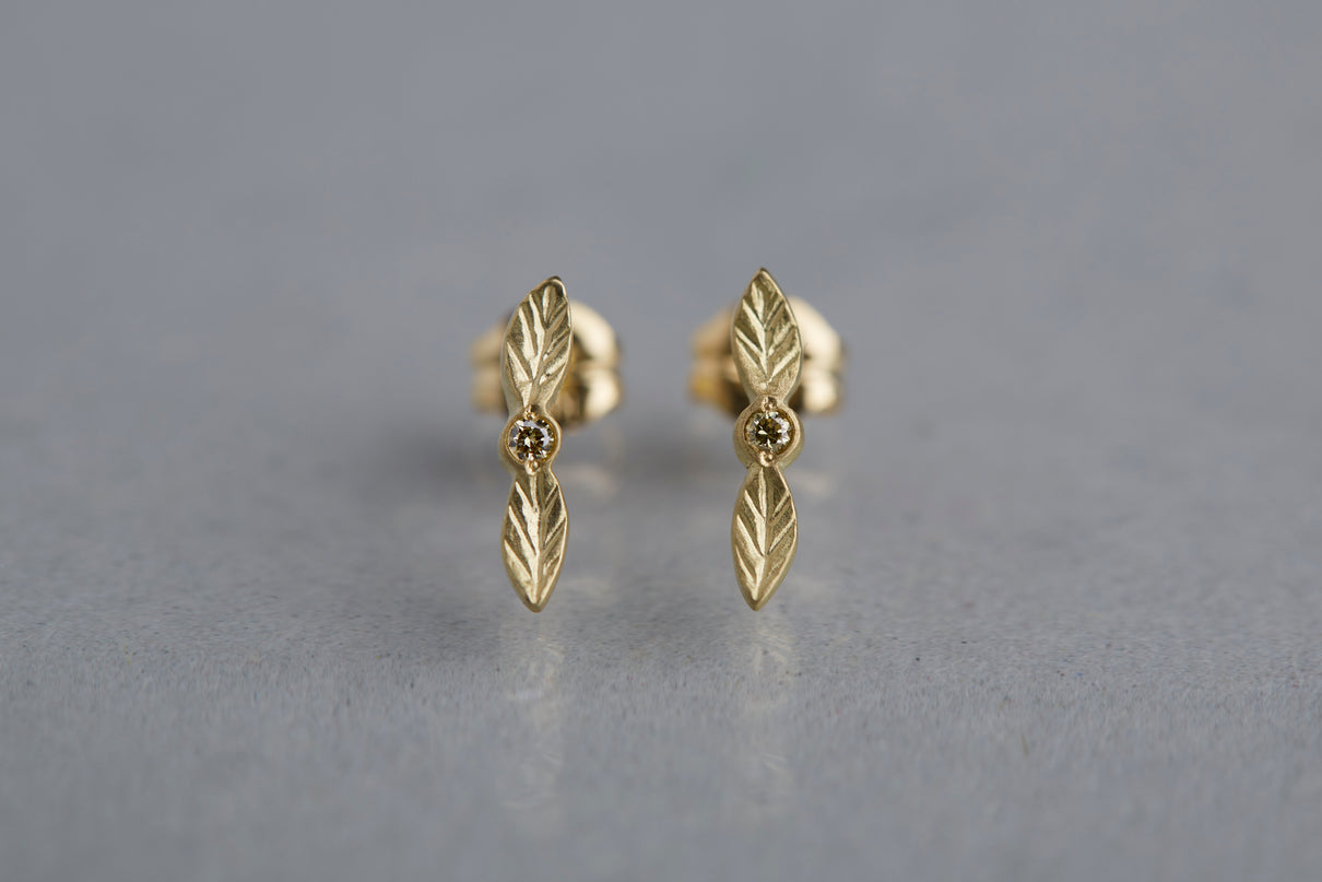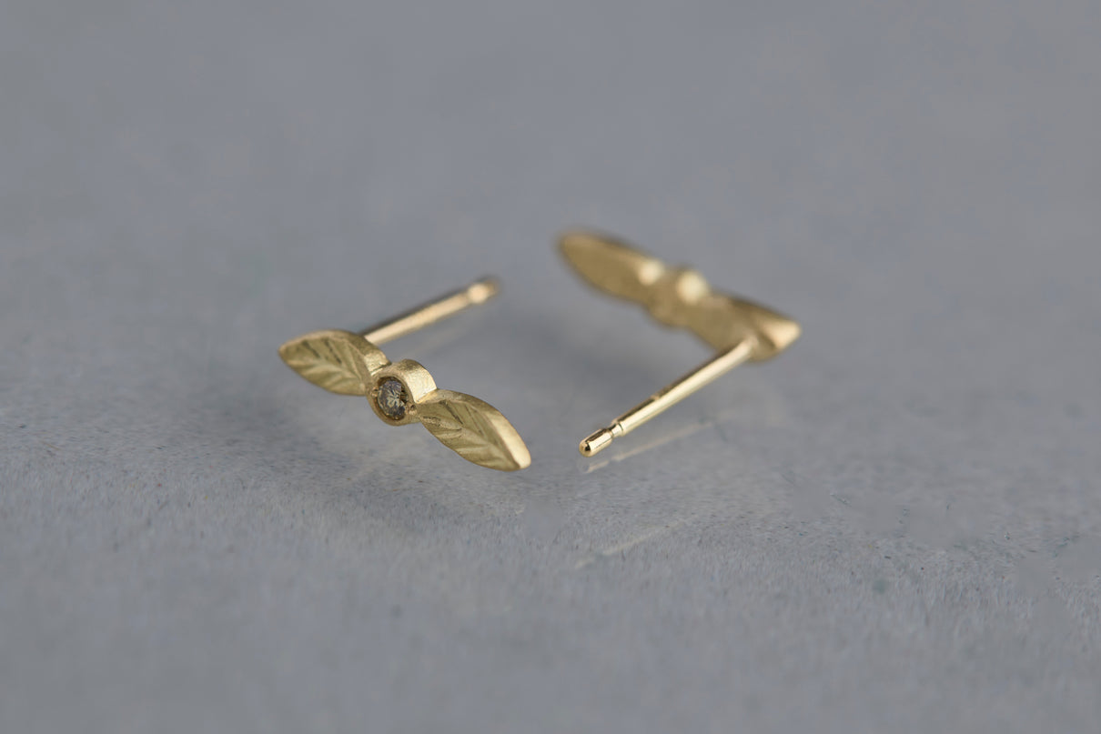 Bloom earrings + diamond (olive)