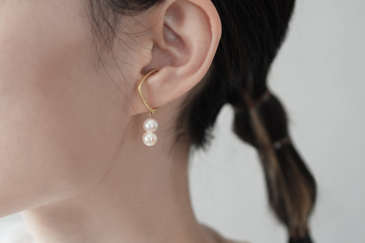 Syami hanging ear cuff + akoya twin pearl