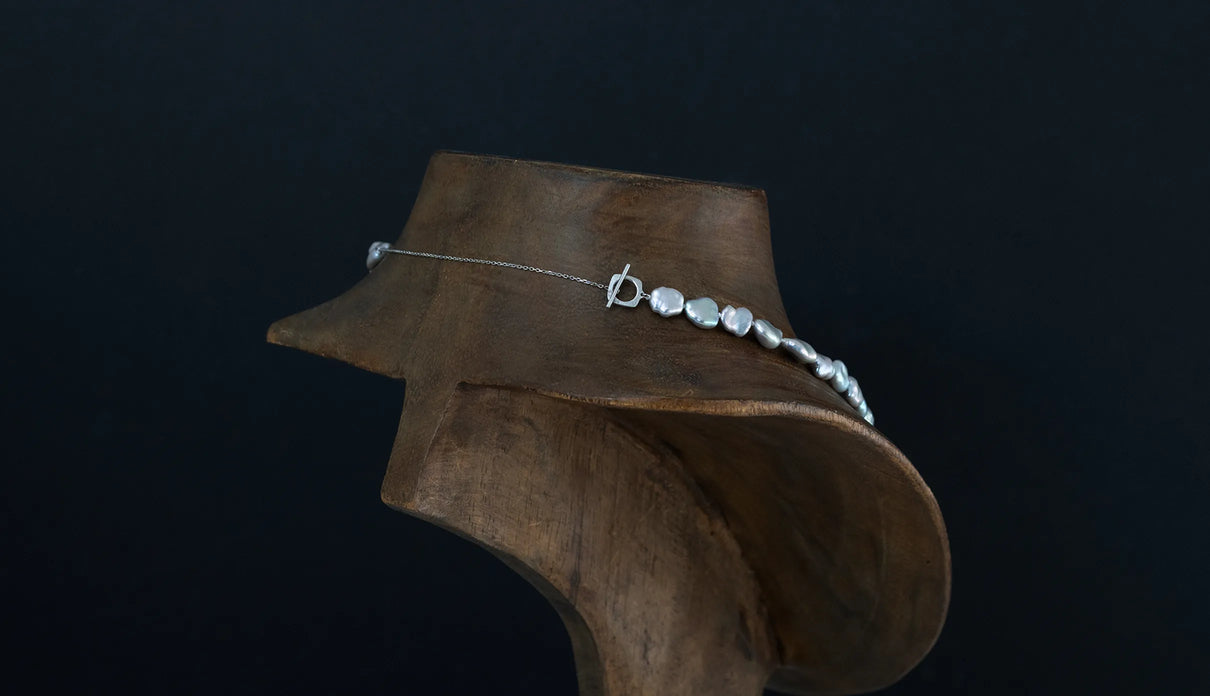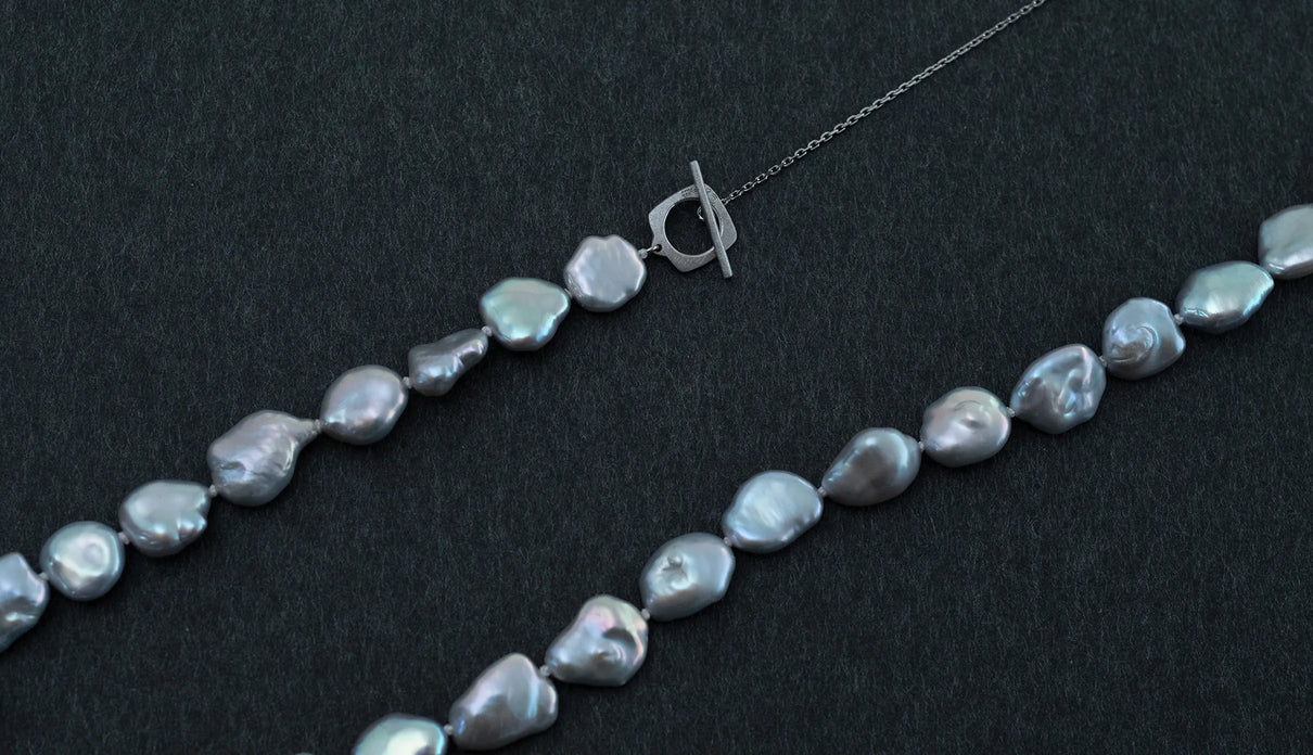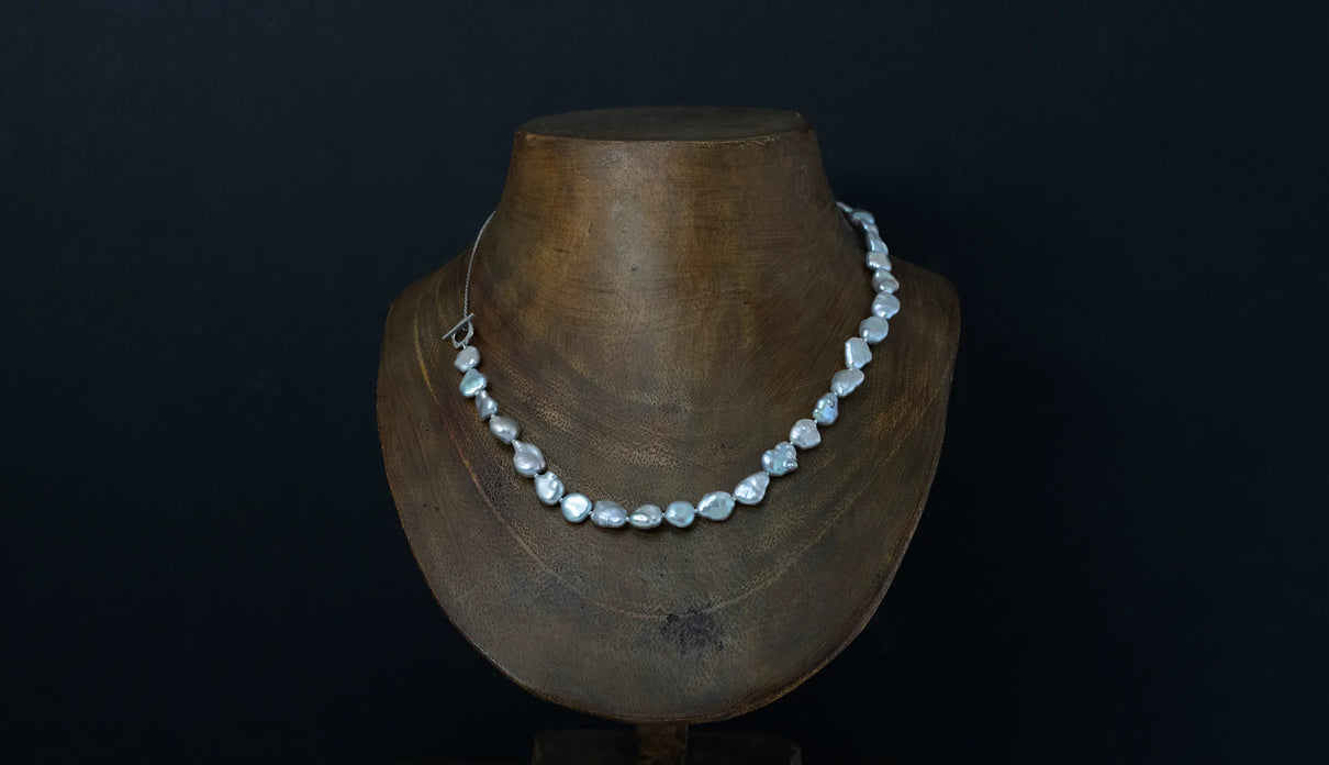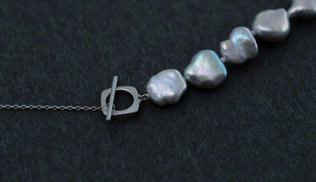 個性豊かな淡水パールで仕立てたネックレス。一粒ひと粒表情が異なる照りの美しいパールは、自然が育む天然パールならではの有機的なコイン型のフォルム。確かな存在感を放つパールが首元で華やぎ、顔まわりの印象を品良く明るくしてくれます。プラチナで仕立てたオリジナルのマンテルパーツが全体のアクセントとなり、お好みに合わせてパーツのバランス位置を変えながら、様々なシーンで日々お楽しみいただけるアイテム。ボリュームと存在感のあるパールですが、見た目以上に軽い着け心地を感じていただけます。