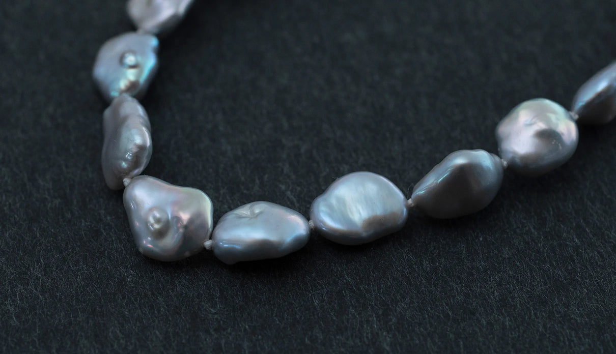 ※こちらはオールノットと呼ばれる、珠と珠の間に結び目を入れながらパール同士を繋いでゆく丁寧な糸通しの方法によって、ネックレスの動きが大変しなやかな仕上がりとなっています。