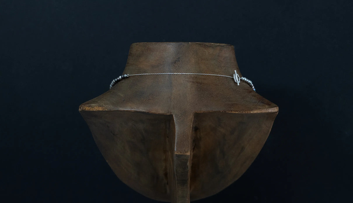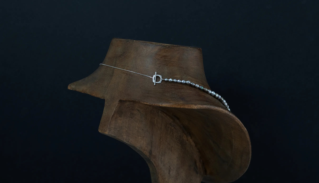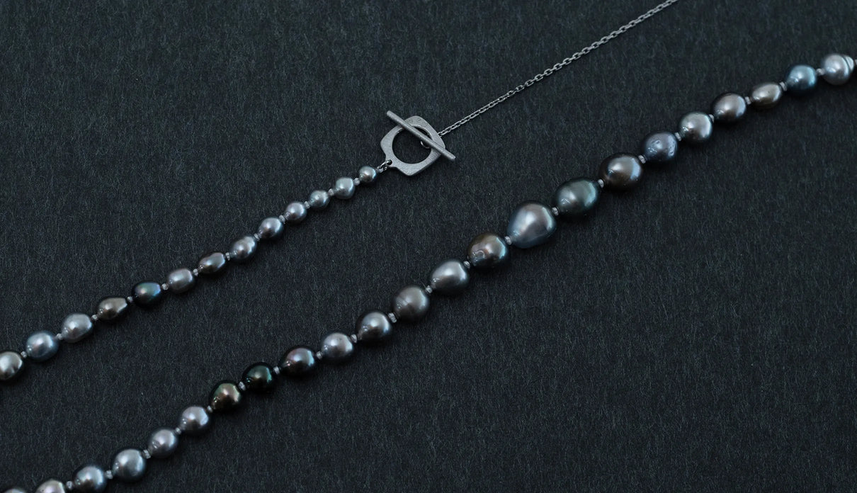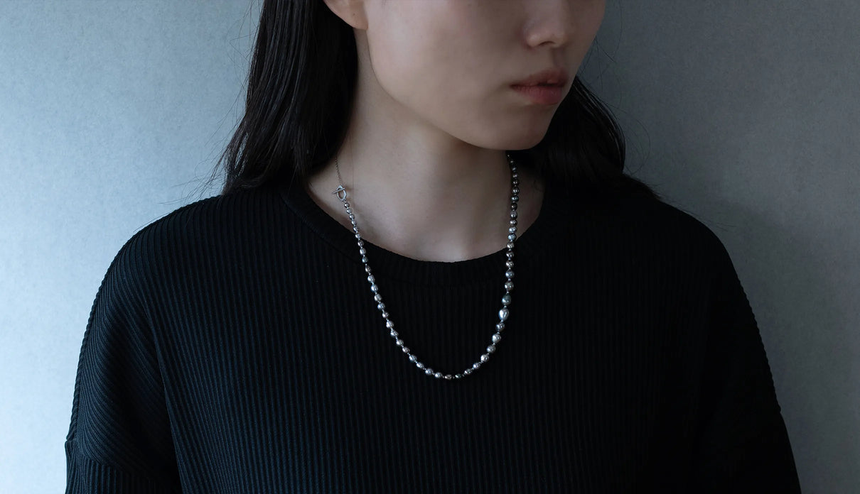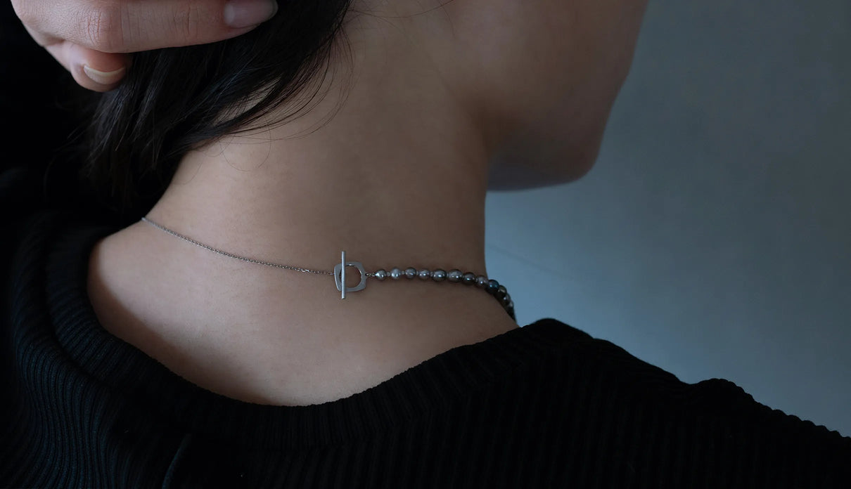何色とも言い難い複雑で奥深い色彩と、洗練された美しさを放つタヒチパール。グラデーションのようにパールの粒感を絶妙に変えながら配したネックレスです。奥深く美しい照りが魅力的で、孔雀の羽のように、グレーの中に緑や青などの複雑な色味が虹色に艶めきます。フォーマルシーンだけでなく、日常の装いも華やかに演出してくれるデザインです。