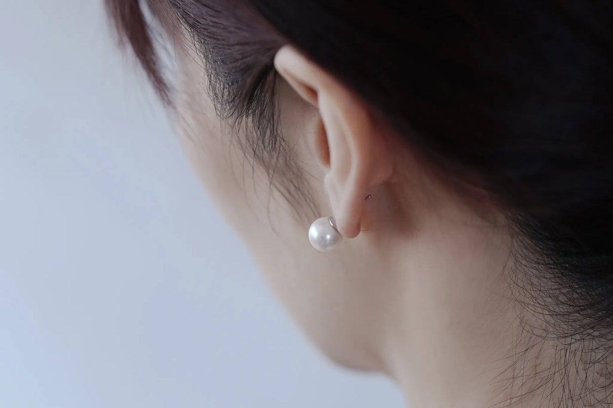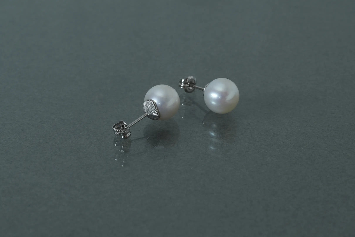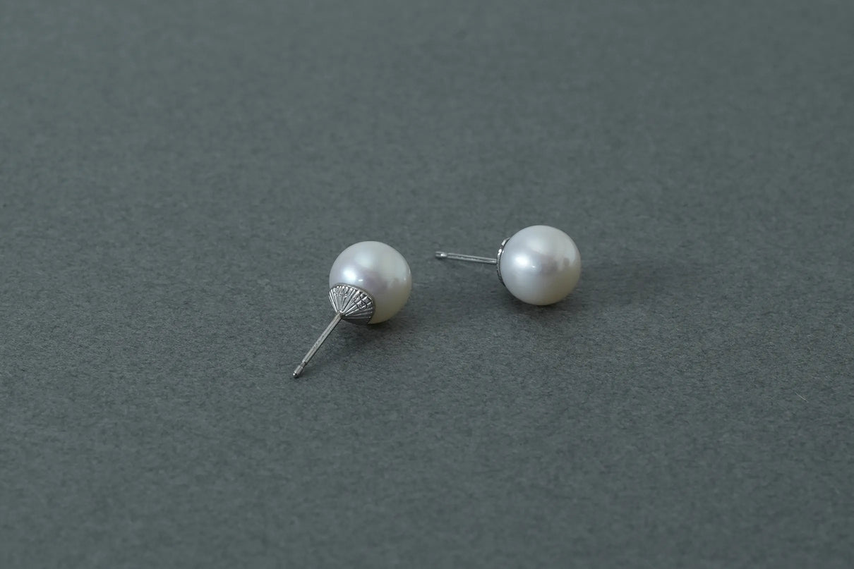 上品な照りで優しく艶めく淡水パールで仕立てたシンプルなスタッドピアス。艶やかなパールにそっと寄り添うプラチナの石座の有機的なフォルムは、張りのある三角形の愛らしいフォルムを持つ"カサガイ"という貝から着想を得ています。石座に施された繊細な手彫りのあしらいは、そんなカサガイ表面の凹凸の模様を彷彿とさせます。身に着けた時には外から見えない部分ではありますが、自分だけが知っている秘めたよろこびをお愉しみいただけるようデザインしました。