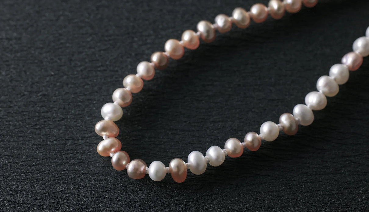 ※珠と珠の間に結び目をつくりながらつなぐ「オールノット」と呼ばれる手法で仕立てています。動きがしなやかで、着けたときに美しいラインを保つ仕上がりです。