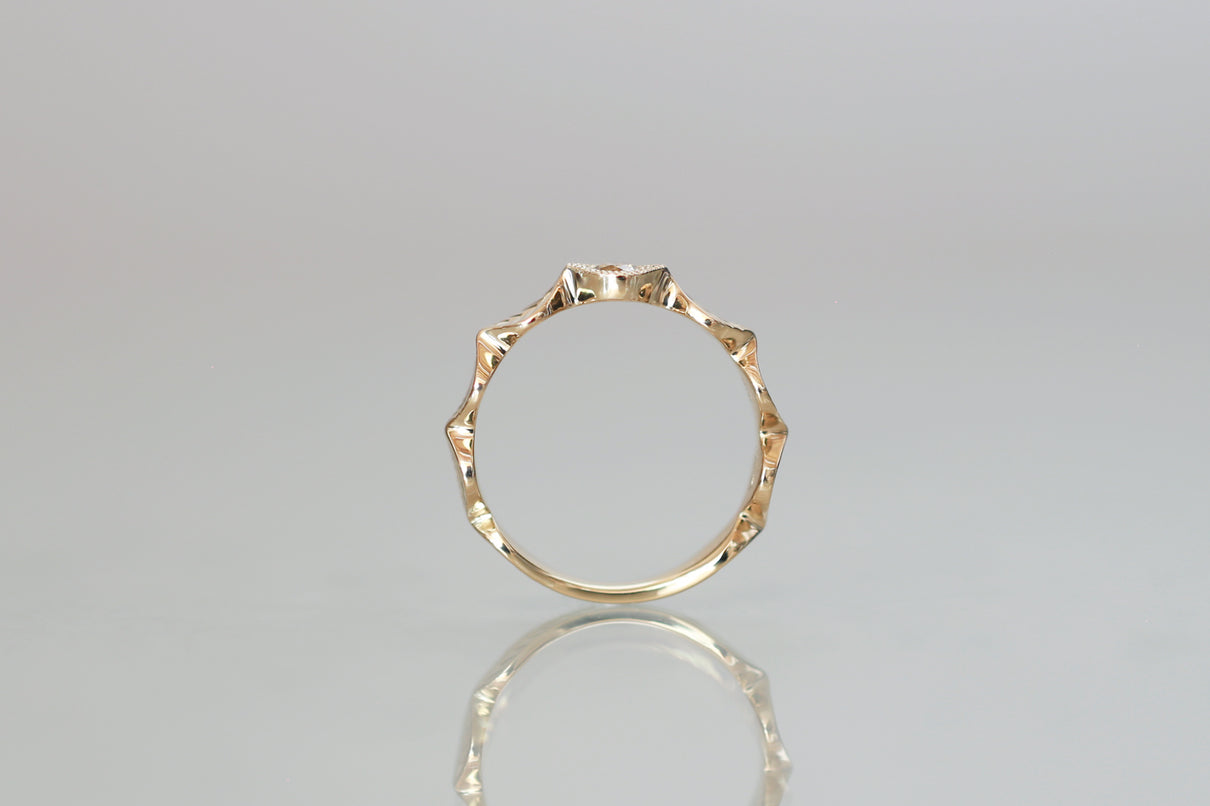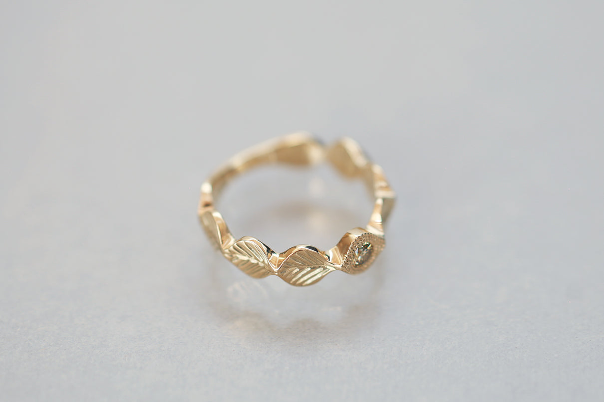 Leaf milgrain ring + diamond ( olive )