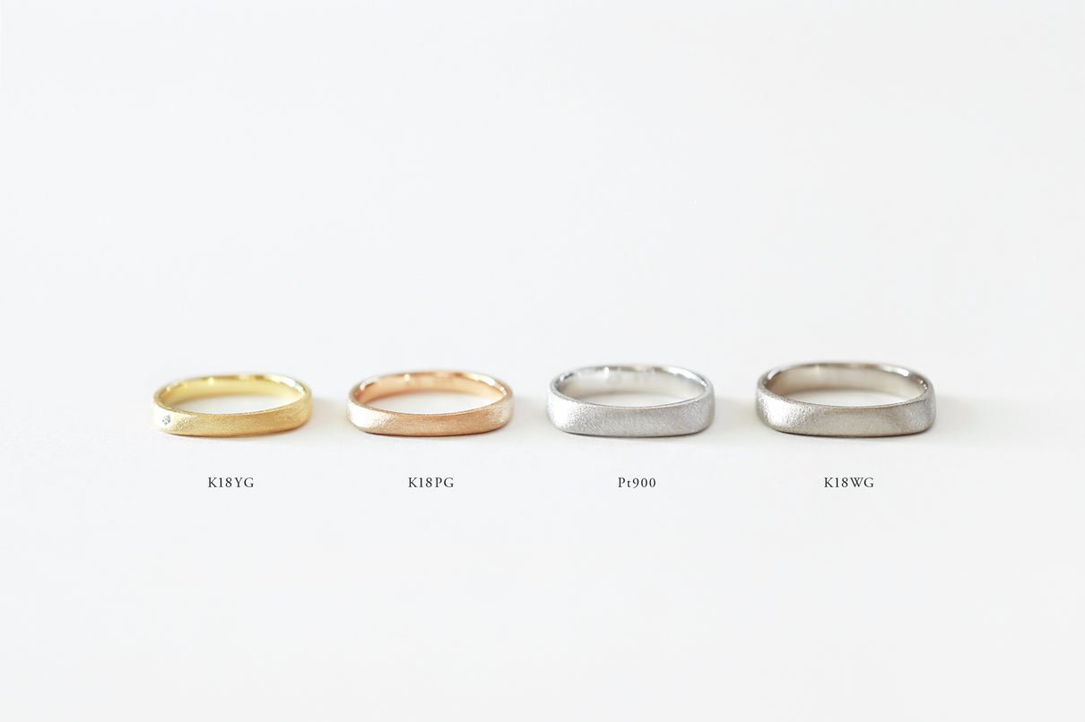 リングの素材は、Pt900(プラチナ) 、 K18YG(イエローゴールド) 、K18WG(ホワイトゴールド)、K18PG(ピンクゴールド)よりお選びいただけます。