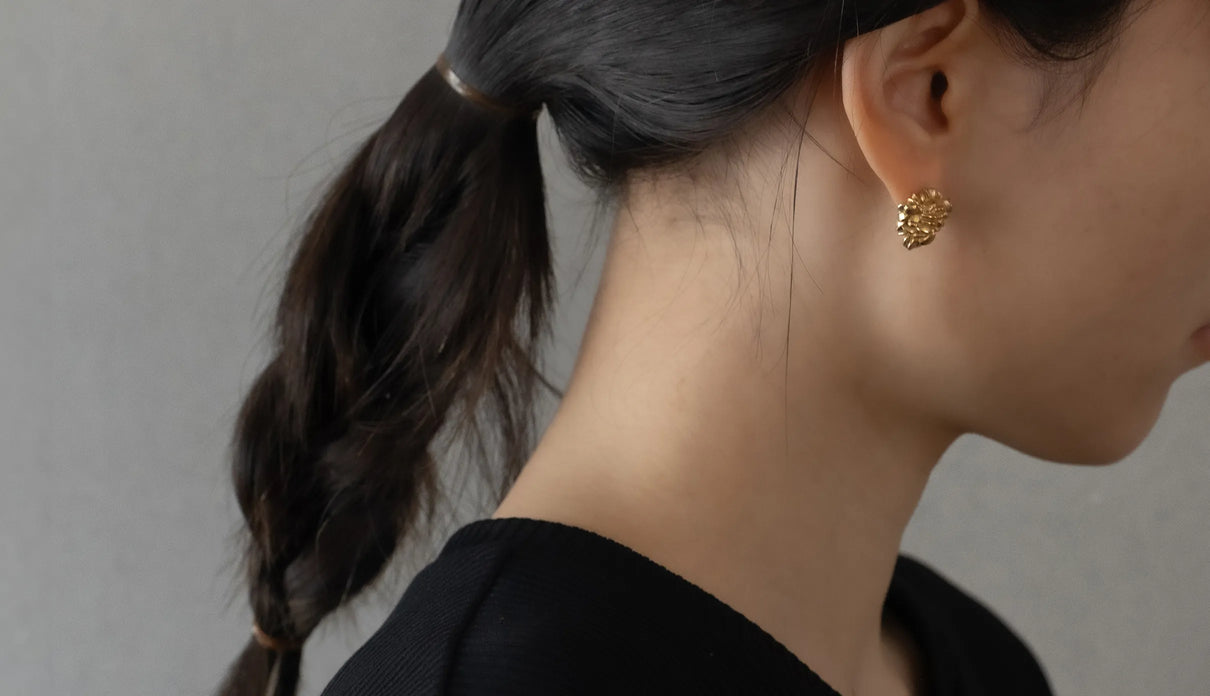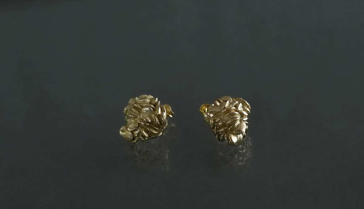 過去に発表してきたジュエリーコレクションのアーカイブの中から、一部限定で発売。物の表情を顕微鏡でじっと覗き込んだとき。それをどこまでも追うように、どんどん拡大していくとずっと知っていたはずのものが魅せる思わず目を見張るほどの別世界をモチーフにしたピアス。一つひとつの円形の縁部分がさりげなく艶めいています。小さな円形がランダムにひしめき合いながら形づくる特徴的なフォルムは個性が引き立ち、顔周りに華やかさを添えてくれるアイテムです。