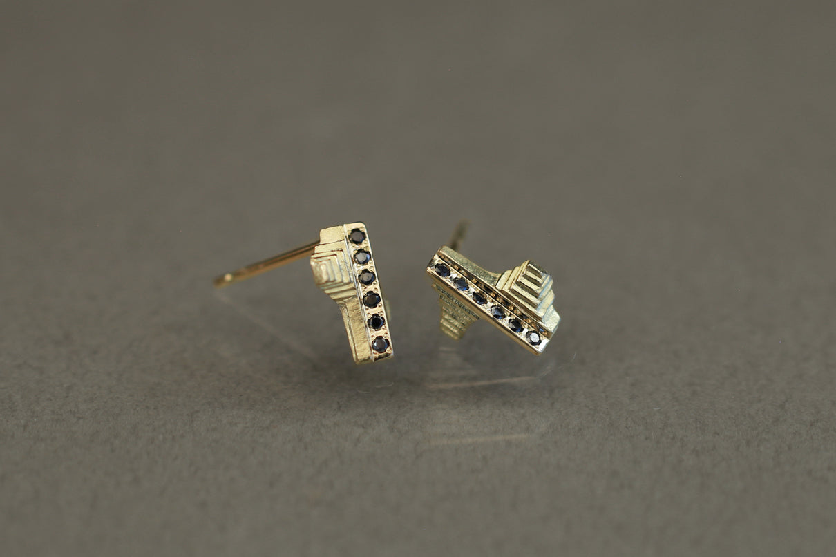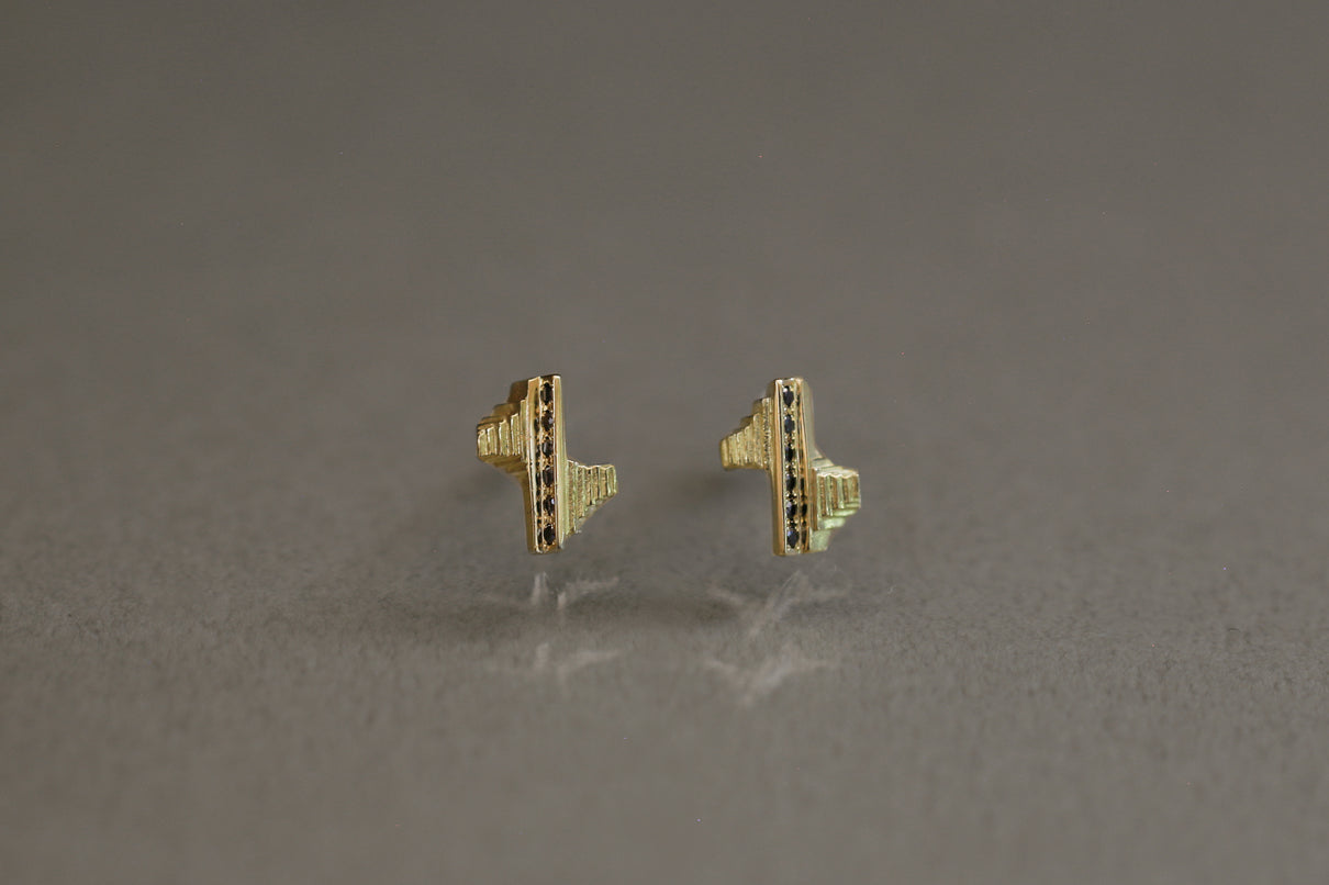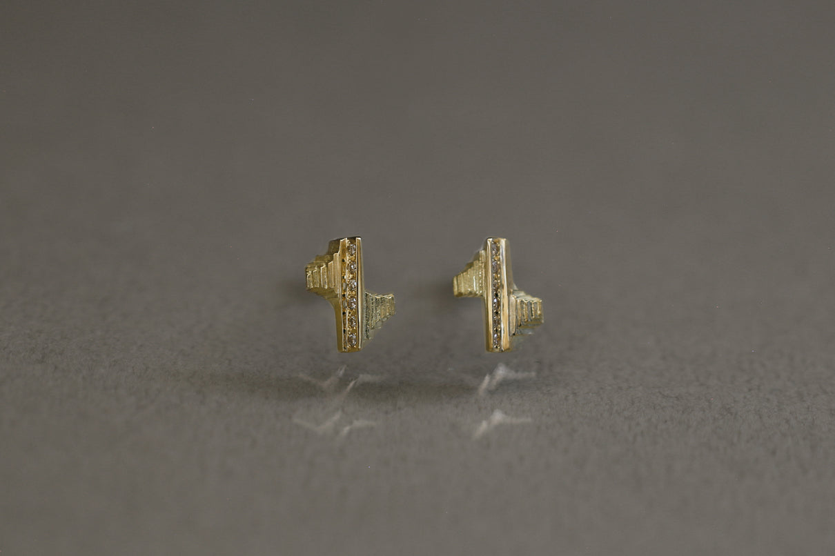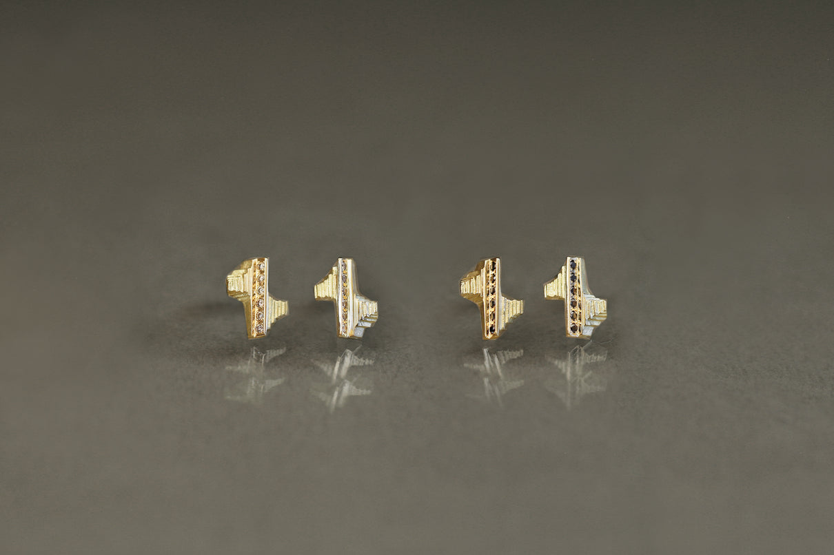 "立ち止まり、目を向ければ 大切なことは 変わらずいつもそこに在る ー" 2023 collection 「Unknown knowns」シリーズのスタッドピアス。時間と経験の蓄積を軌跡のように表す、幾重もの層になったアシンメトリーなデザインのK18ゴールドピアス中央には、クリアやカラーメレダイヤモンドを留め、その多角的な見え方をコンセプトに重ねました。6石に連なるメレダイヤモンドが繊細に煌めき、クリアダイヤモンドは清らかに華やぎ、ライトブラウンダイヤモンドは肌に馴染みの良いカラーで品良い印象に。ブラックダイヤモンドは個性が引き立ち、シックな印象を放ちます。装いを選ばない日々身につけやすいミニマムなサイズ感で、さりげない個性が耳元で華やぐアイテムです。(*ダイヤモンドはクリアダイヤモンド、ブラウンダイヤモンド、ブラックダイヤモンドの3種よりお選びください)