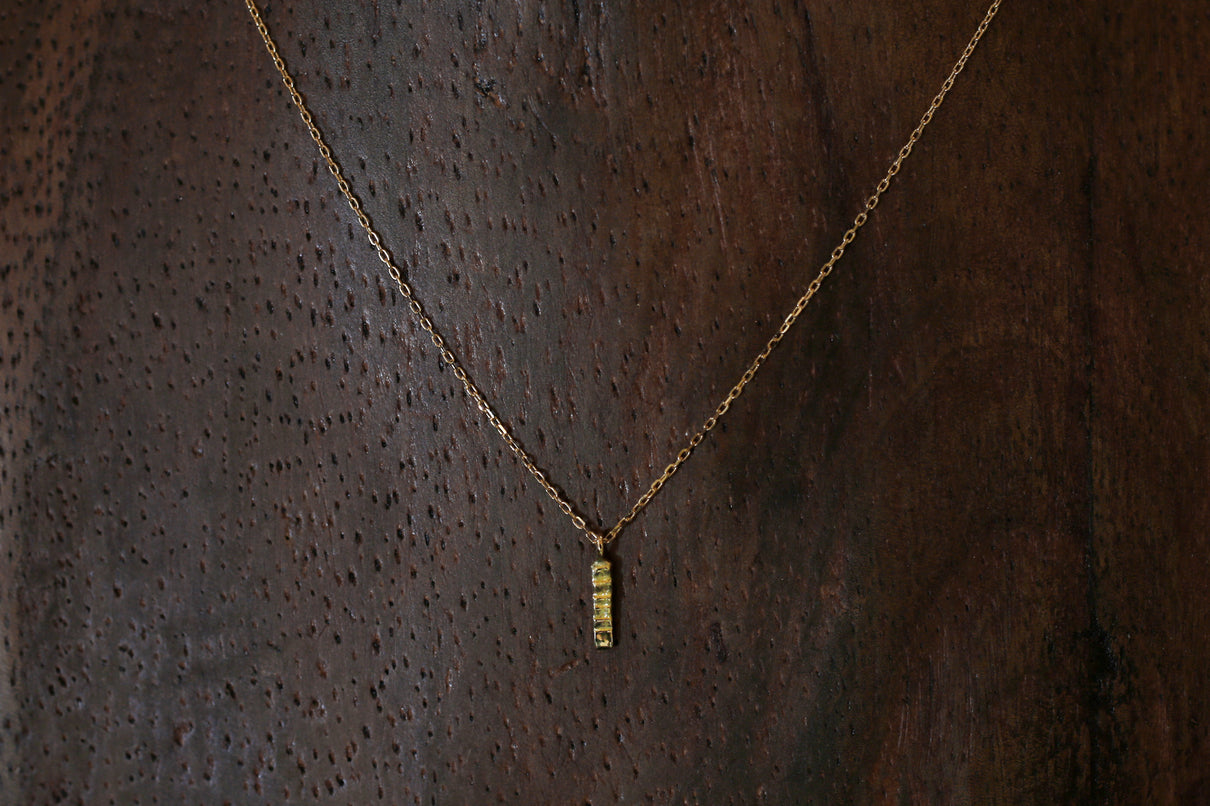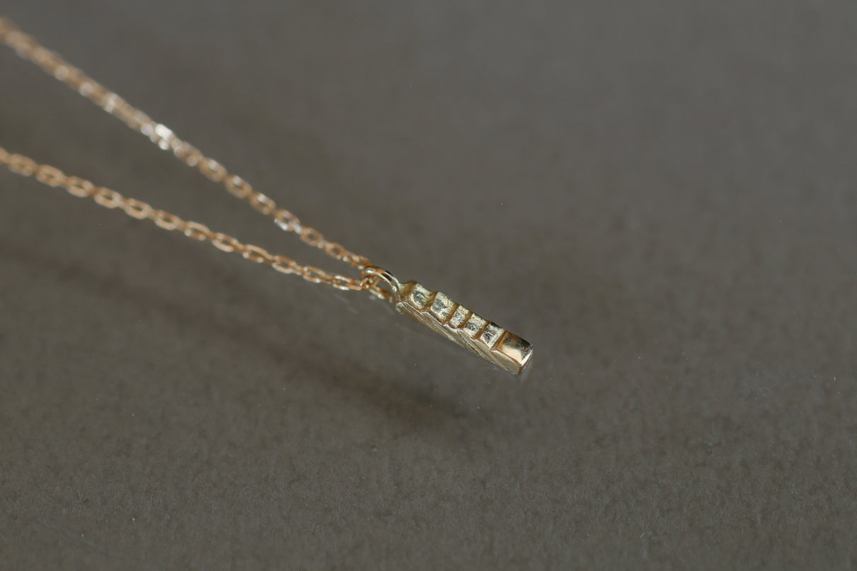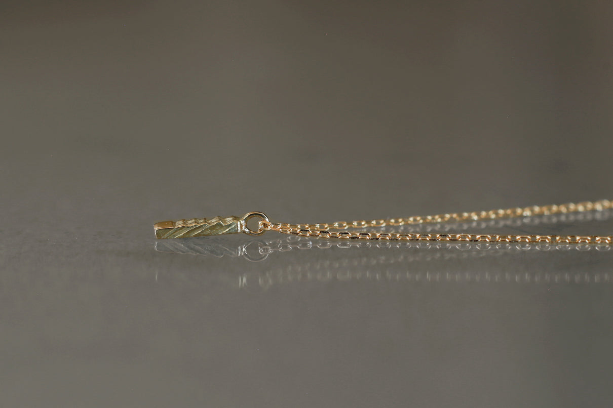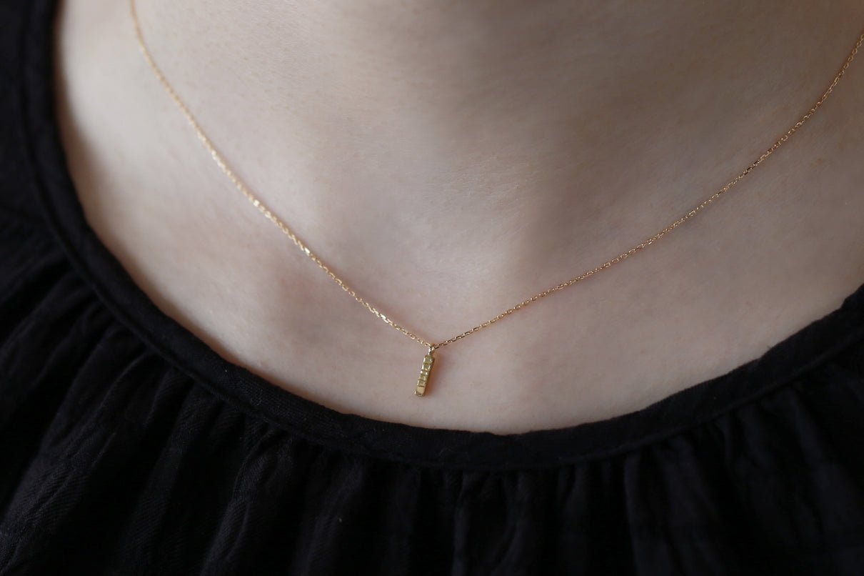 "立ち止まり、目を向ければ 大切なことは 変わらずいつもそこに在る ー" 2023 collection 「Unknown knowns」シリーズのネックレス。時間と経験の蓄積を軌跡のように表す、幾重もの層になったアシンメトリーなモチーフの先端にはきりりとした艶仕上げのアクセントを加え、その多角的な見え方をコンセプトに重ねました。シンプルながらもひと匙の個性を感じるデザインで、ひとつで身につけるのは勿論、ロングネックレスとの重ね付けにも活躍します。
