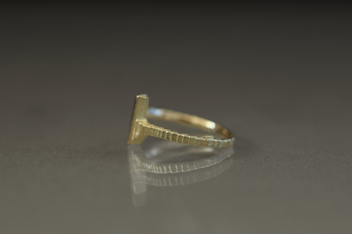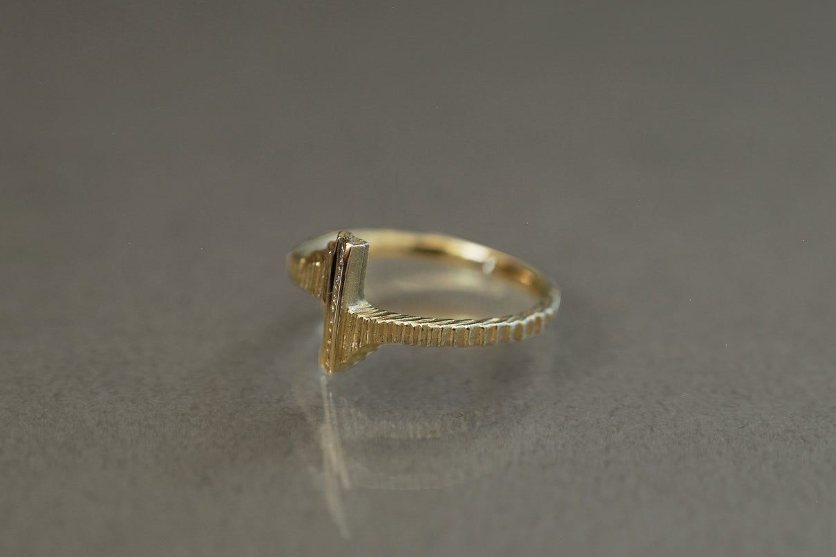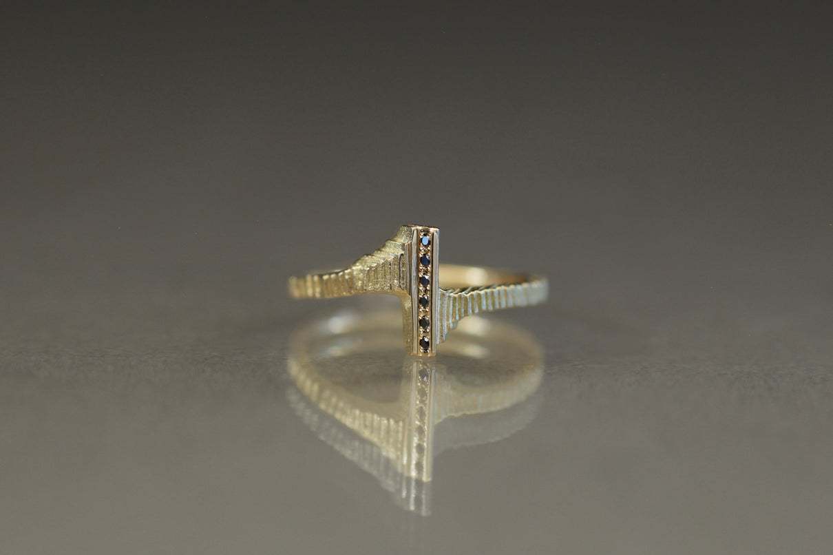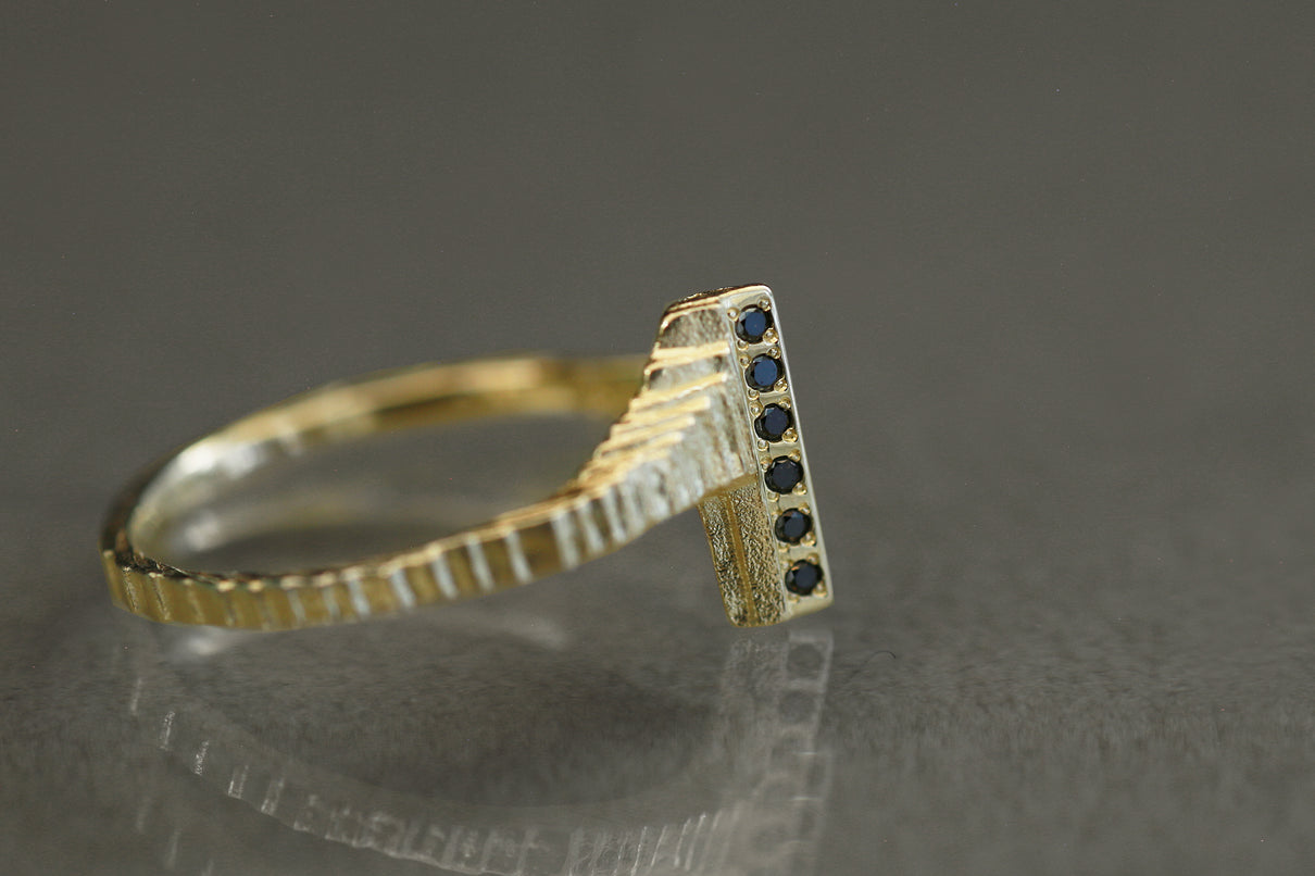 "立ち止まり、目を向ければ 大切なことは   変わらずいつもそこに在る ー" 2023 collection 「Unknown knowns」シリーズのリング。時間と経験の蓄積を軌跡のように表す、幾重もの層になったアシンメトリーなデザインのK18ゴールドのリング中央に、クリアダイヤモンドやカラーダイヤモンドを留め、その多角的な見え方をコンセプトに重ねました。6石に連なるメレダイヤモンドが繊細に煌めき、クリアダイヤモンドは清らかに華やぎ、ライトブラウンダイヤモンドは肌に馴染みの良いカラーで品良い印象に。ブラックダイヤモンドは個性が引き立ち、シックな印象を放つアイテムです。 (*ダイヤモンドはクリアダイヤモンド、ブラウンダイヤモンド、ブラックダイヤモンドの3種よりお選びください)